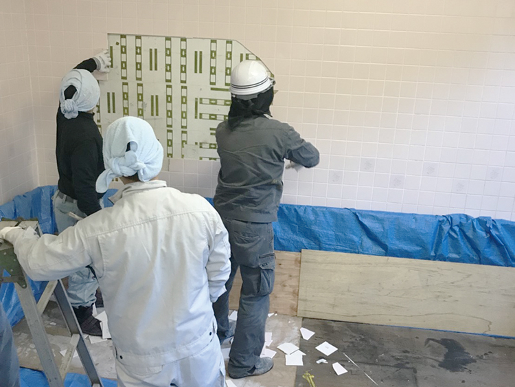 トイレの中古くなったタイルをはがし、新しいものへ張り替えます。
